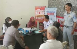 Penanggung Jawab Jasa Raharja Samsat OKU I Olan Reynaldo A.S bersama dengan UPTB Samsat OKU I gencar...
