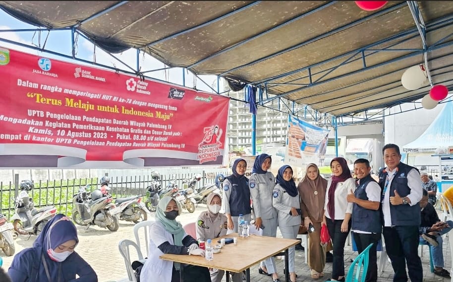 Palembang (10/8/2023) – Dalam rangka upaya bentuk kepedulian kepada masyarakat dan upaya pencegahan penanggulangan kecelakaan lalu lintas, PT. Jasa Raharja Cabang Sumatera Selatan berkolaborasi bersama UPTB Samsat Palembang IV dengan memberikan layanan pemeriksaan kesehatan dan pengobatan gratis di Samsat Palembang IV pada hari Kamis (10/8). Kegiatan ini dilaksanakan untuk memfasilitasi wajib pajak dan masyarakat yang berada di lingkungan sekitar Samsat Palembang IV guna memastikan kondisi kesehatannya. Maka dari itu wajib pajak dan masyarakat sekitar dapat melaksanakan perjalanan dalam keadaan sehat dan aman sehingga mengurangi resiko terjadinya kecelakaan akibat dari kondisi kesehatan yang tidak baik.