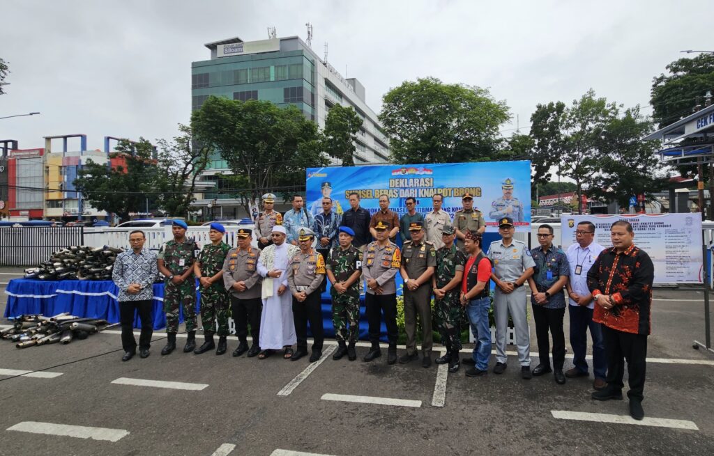 Palembang – Polda Sumatera Selatan dalam rangka menciptakan situasi yang kondusif dan aman bagi pengguna jalan pada khusus nya dan seluruh masyarakat pada umumnya di wilayah hukum Sumatera Selatan melakukan giat penertiban pada pengguna knalpot brong, dimana pengguna knalpot ini sering kali mengganggu kenyamanan pengguna jalan lainnya dengan suara mesin yang diluar batas atau decibel yang standar dan melanggar pasal 285 ayat 1, UU 22 Tahun 2009 tetang Lalu Lintas dan Angkutan Jalan.