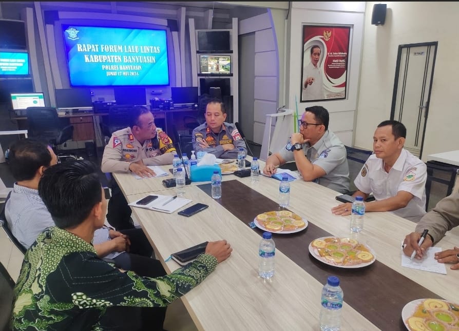 Banyuasin – Pada hari Selasa, 21 Mei 2024, bertempat di Aula Command Center Polres Banyuasin Jasa Raharja Cabang Sumatera Selatan yang di wakili oleh Penanggung Jawab Jasa Raharja Samsat Banyuasin R. Komarudin Desriva dalam acara Rapat Forum Lalu Lintas dengan pembahasan perihal masih ditemukan ranmor yang melebihi tonase dan tidak sesuai dengan ketentuan tata cara pemuatan dan pengamanan barang di wilayah Kabupaten Banyuasin dalam langkah pengambilan tindakan penertiban ranmor tersebut.