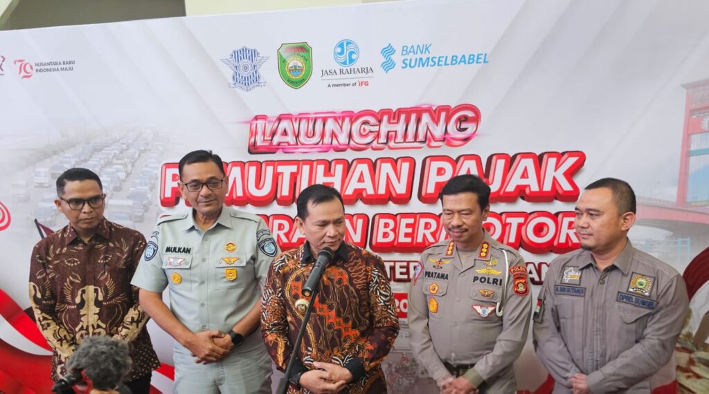 Palembang – Bertempat di Atrium PTC Mall Palembang, Kepala Jasa Raharja Cabang Sumsel Mulkan SE, M,SI AAAIK beserta jajaran menghadiri Launching Program Pemutihan Pajak Kendaraan Bermotor Provinsi Sumatera Selatan Tahun 2024 pada 19 Agustus 2024. Kegiatan ini dibuka langsung oleh PJ Gubernur Provinsi Sumatera Selatan Elen Setiadi SH. M.S.E dan juga ikut dihadiri Direktur Lalu Lintas Polda Sumatera Selatan dan juga Kepala Bapenda Provinsi Sumatera Selatan, Komisaris utama Bank Sumsel Babel dan sejumlah kepala OPD beserta jajaran. Dalam upaya bersama-sama mendukung dan mensukseskan program pemerintah provinsi Sumatera Selatan dalam memberikan Keringanan Pajak Kendaraan Bermotor di wilayah Sumatera Selatan.
