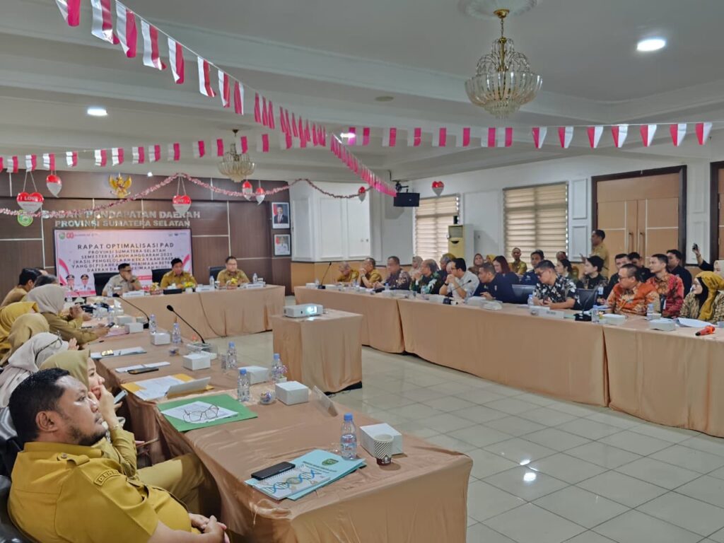 Palembang – Pemerintah Provinsi Sumatera Selatan (Pemprov Sumsel) terus berupaya meningkatkan Pendapatan Asli Daerah (PAD) dan retribusi daerah. Upaya ini ditegaskan dalam Rapat Optimalisasi PAD dan Retribusi Daerah Provinsi Sumsel Semester I Tahun Anggaran 2025 yang diselenggarakan pada Selasa, 19 Agustus 2025, bertempat di Aula Sriwijaya, Kantor Bapenda Prov Sumsel.